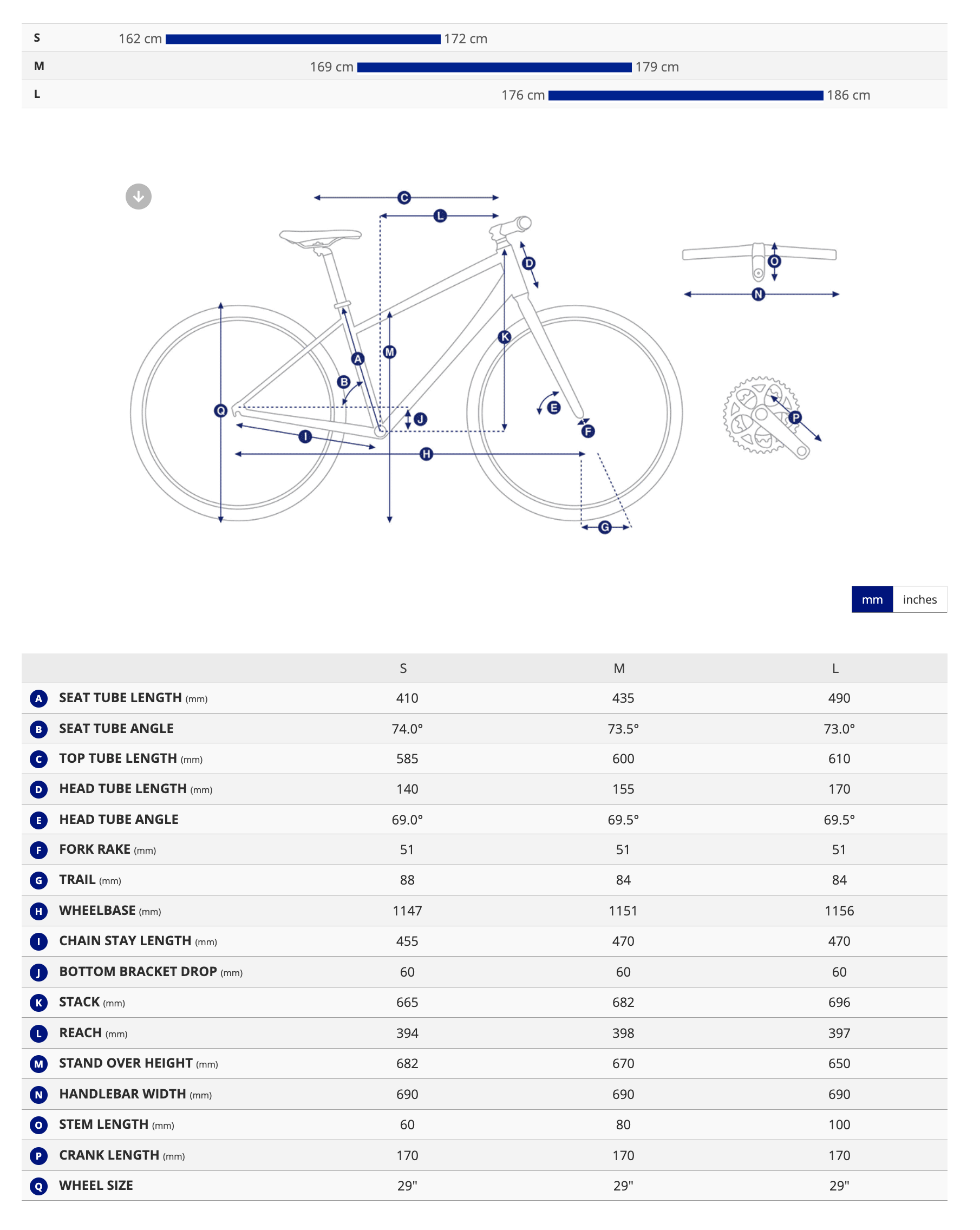 S: 157–169 cm | M: 164–176 cm | L: 171–183 cm