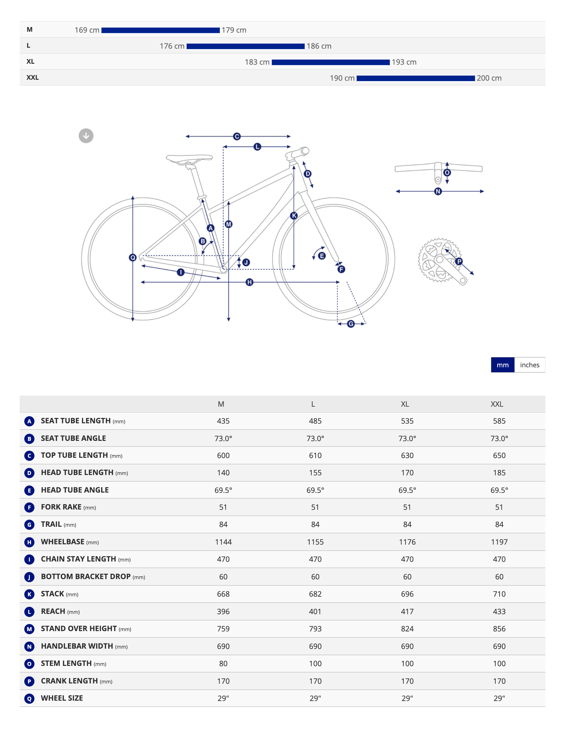 S: 162–172 cm | M: 169–179 cm | L: 176–186 cm | XL: 183–193 cm