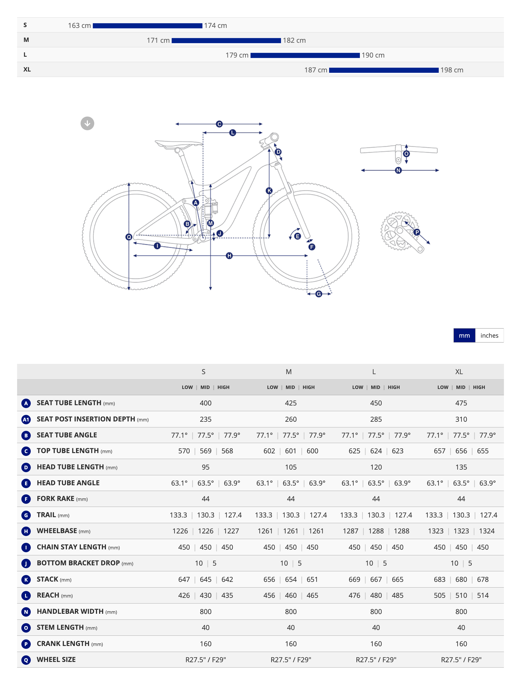 S: 163–172 cm | M: 169–179 cm | L: 176–186 cm | XL: 183–193 cm