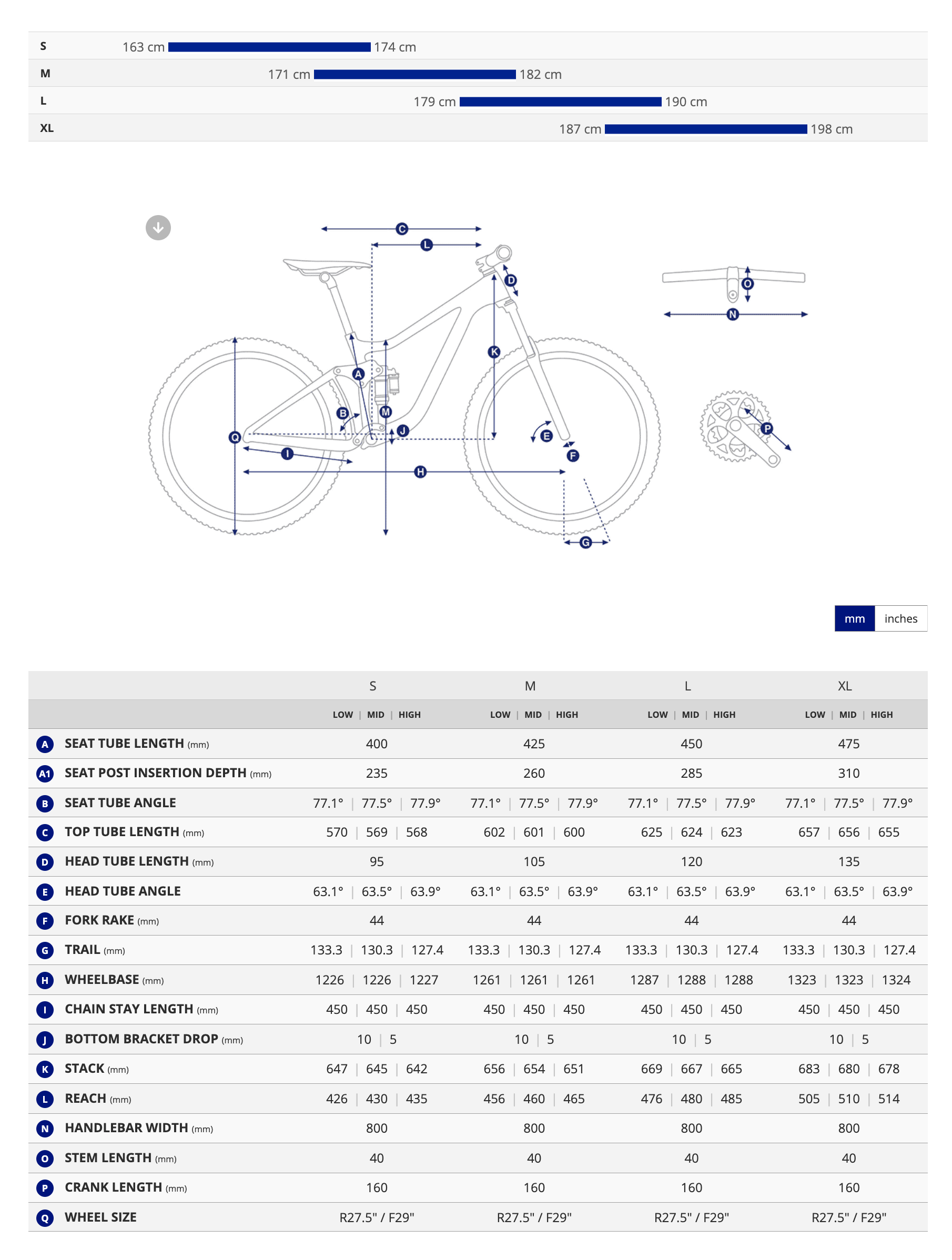 S: 163–172 cm | M: 169–179 cm | L: 176–186 cm | XL: 183–193 cm
