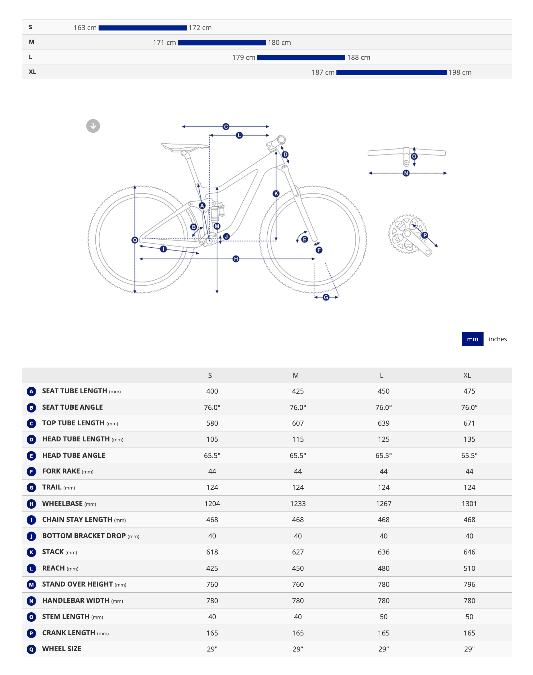 S: 163–172 cm | M: 169–179 cm | L: 176–186 cm | XL: 183–193 cm