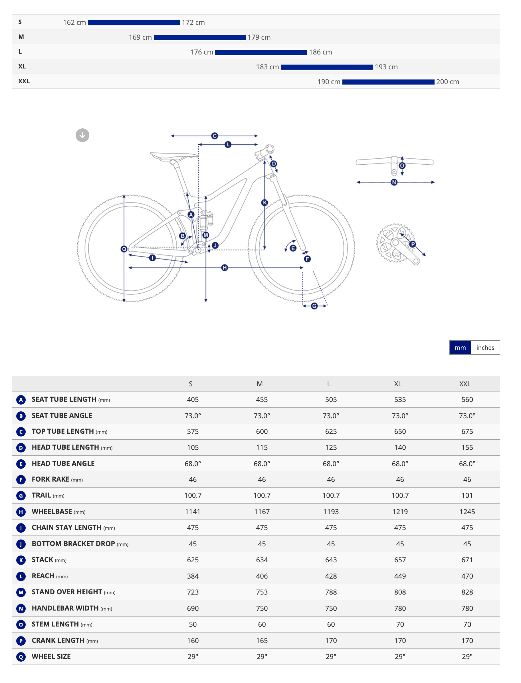 S: 163–172 cm | M: 169–179 cm | L: 176–186 cm | XL: 183–193 cm