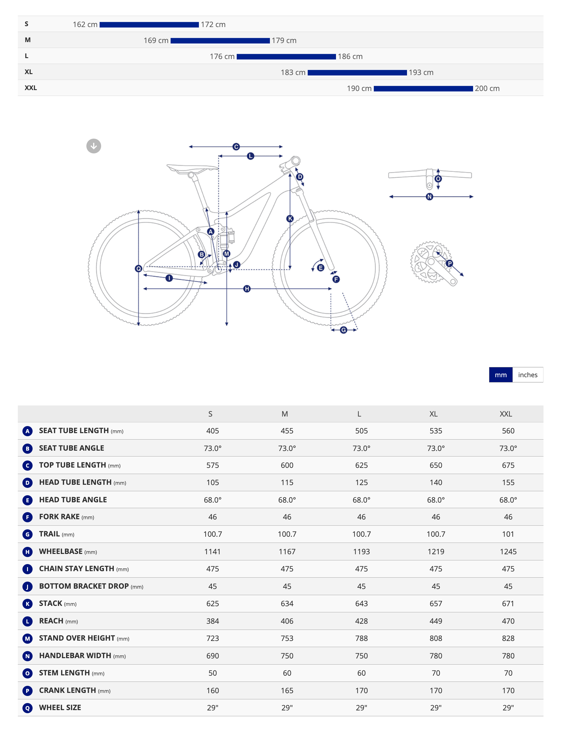 S: 163–172 cm | M: 169–179 cm | L: 176–186 cm | XL: 183–193 cm