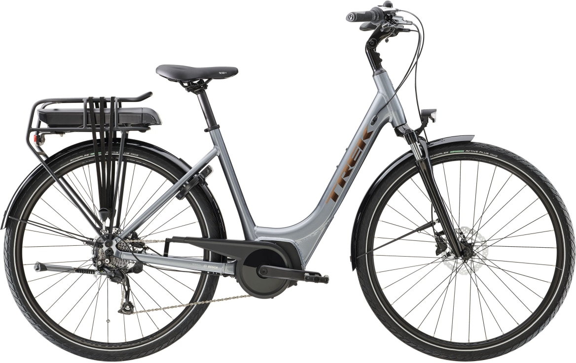The TREK Verve+ 1 Lowstep - 300Wh is where technology meets tradition, seamlessly integrating the latest in e-bike design into a comfortable, manoeuvrable and efficient ride. Ideal for daily commutes, adventures, and fitness rides, you'll marvel at how the reliable Bosch pedal-assist system eases your journey.Key features: - Lightweight yet durable aluminium frame with lowstep geometry, perfect for easy mounting and dismounting- 8-speed Shimano d ... Read More